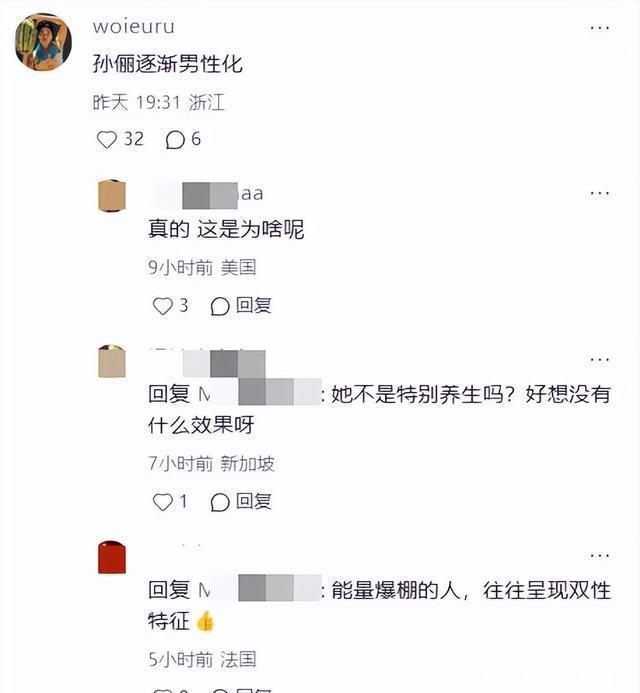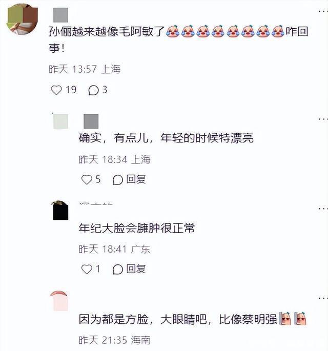 还有的网友说孙俪越来越男性化了,不过确实看起来有点像男人,看起来整张脸都有凶相了。